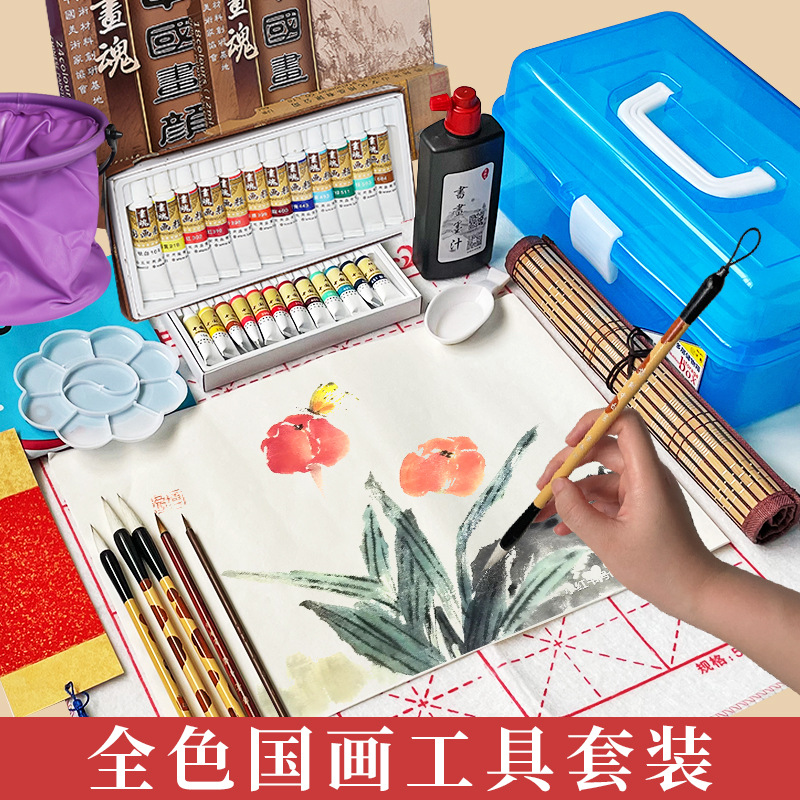 中国絵画用品とツールの完全なセット、初心者向けのプロの絵画魂鉱物顔料、12色、24色、18色、中国絵画の水墨画