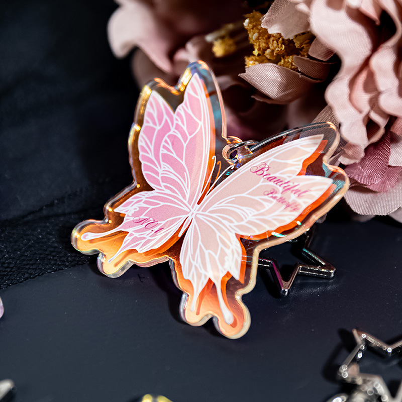 夢のような蝶の影カラーレーザーアクリルキーホルダーペンダント高価値蝶スクールバッグペンダント痛パッケージ装飾
