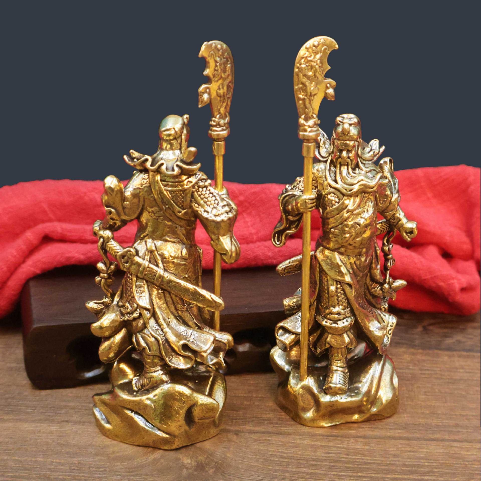 真鍮製関羽像、関二武財神像、オフィス開店装飾、真鍮工芸品、武財神像