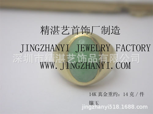 翡翠の指輪をはめ込んで金メッキの指輪を設計して製造します。