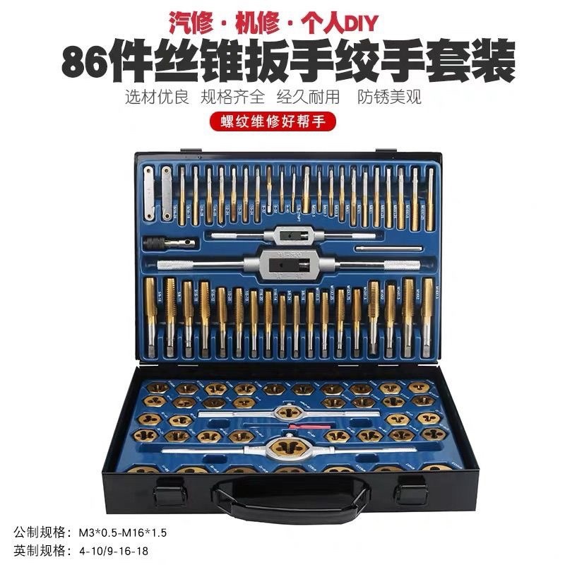 86 タップセット合金鋼ハンド工業用グレードレンチセットタップレンチねじメトリックタップインチ部品