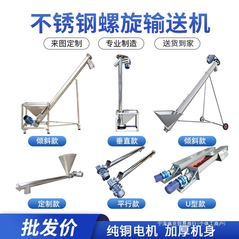 小型吸引機、ホイール付きフィーダー、垂直スクリューコンベア、家庭用リフター、ステンレス製スクリューフィーダー