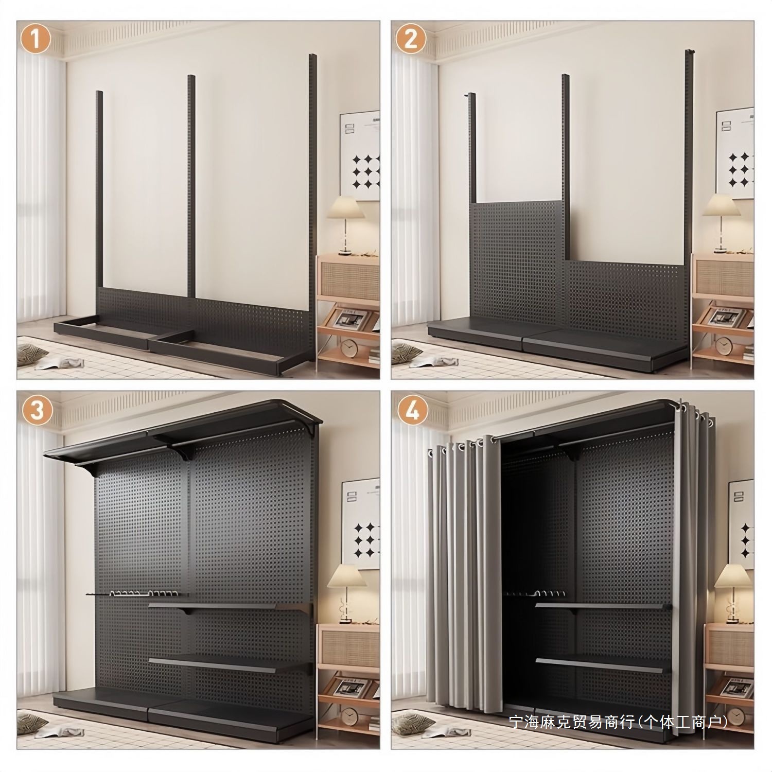 オールメタル吊り下げ式シンプル賃貸住宅ワードローブ収納ラックワードローブ寝室ホールボード囲みオープンフルフロア