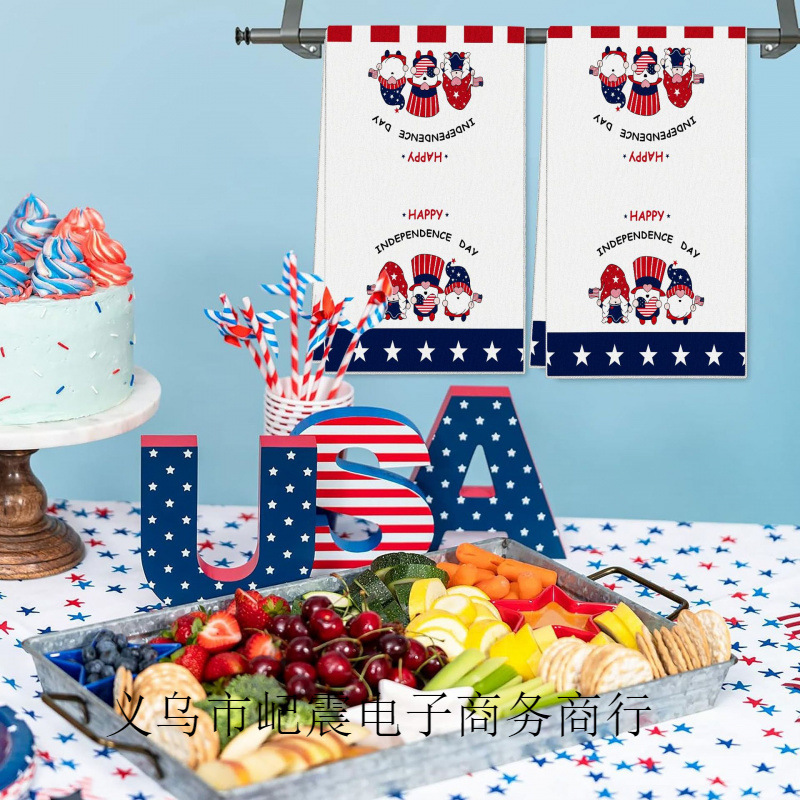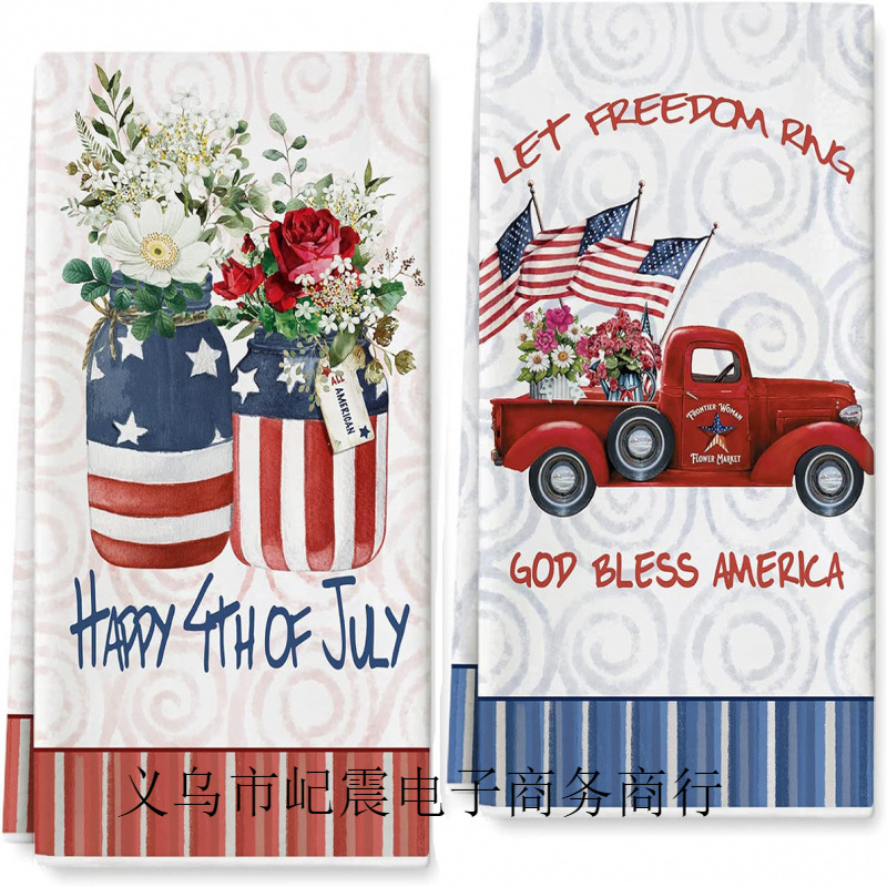 国境を越えた TEMU サプライ マイクロファイバー 独立記念日 2 点セット 3D プリント タオル キッチン 吸収性ハンドタオル フェイスタオル