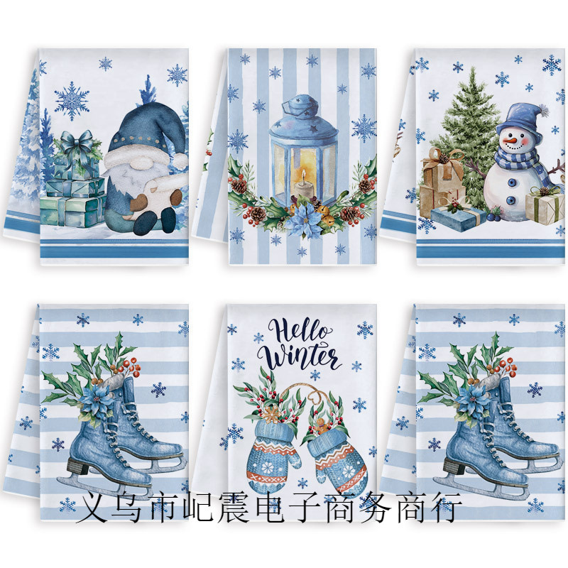 クロスボーダータオル JIT ドロップシッピングタオル キッチンディッシュタオル ブルー クリスマスプリントナプキン コンビネーションセット
