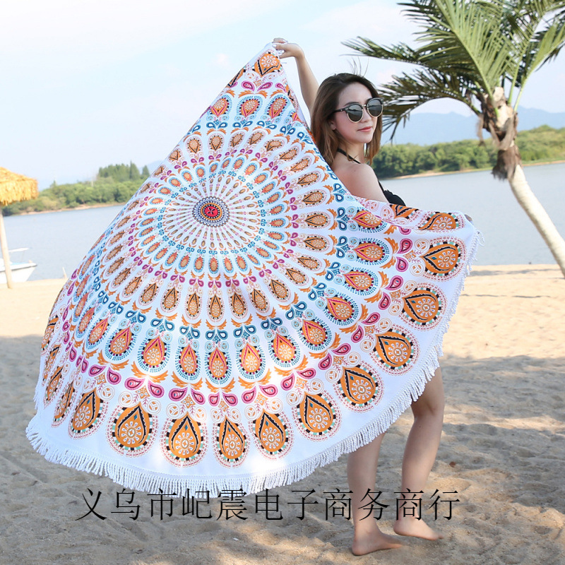 クロスボーダーラウンドビーチタオルマイクロファイバーショール吸収性糸くずの出ないデジタルプリント厚みのあるタッセルバスタオル