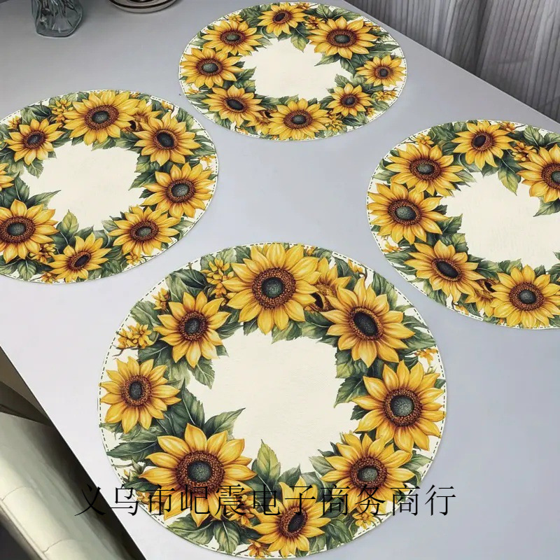クロスボーダー春の新作ラウンド波状エッジ扇形プレースマットひまわりの花孔雀柄プレースマット