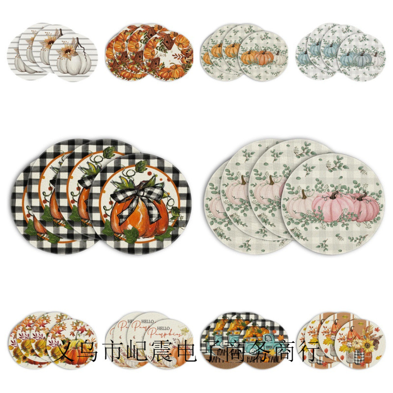 クロスボーダー新製品ラウンドプレースマット秋カボチャ感謝祭リネンプレースマット