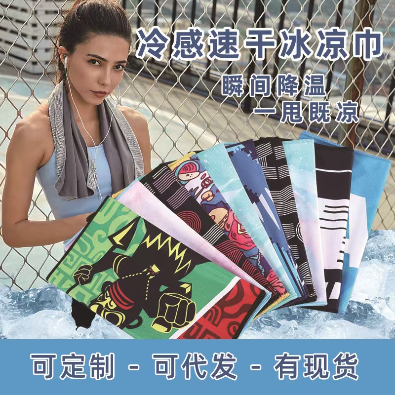 クロスボーダー貿易冷感タオルプリントパターンとロゴスポーツ吸汗速乾冷却タオル工場直販卸売