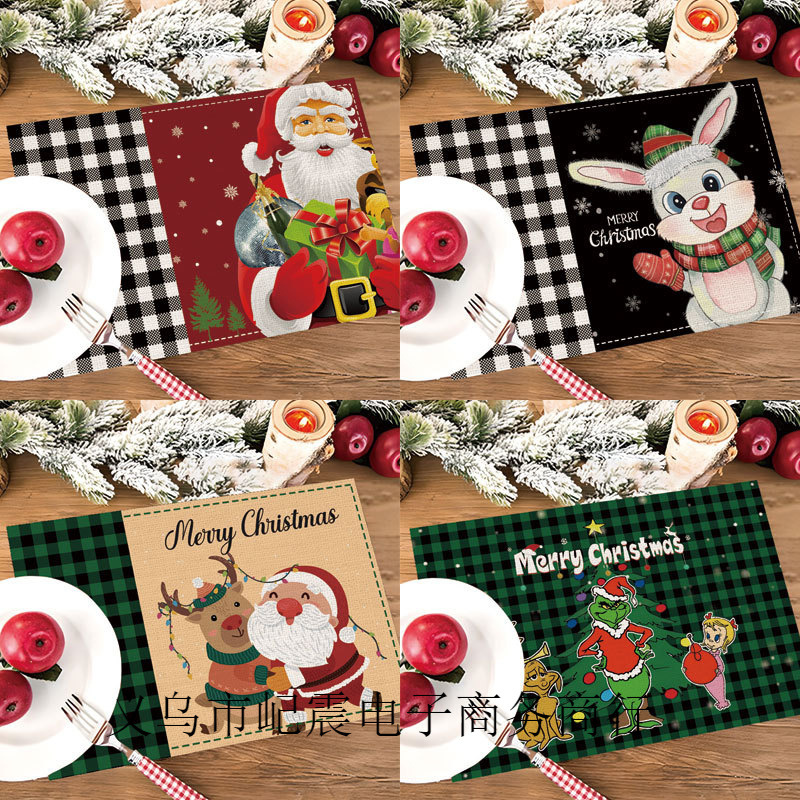 Amazonクロスボーダーベストセラーリネンプレースマットクリスマスレトロクリスマスホリデー