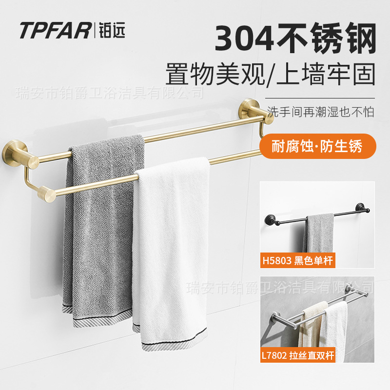 メーカー直販304ステンレス製タオルラック穴なしトイレタオルバー単双棒バスタオルラック棚