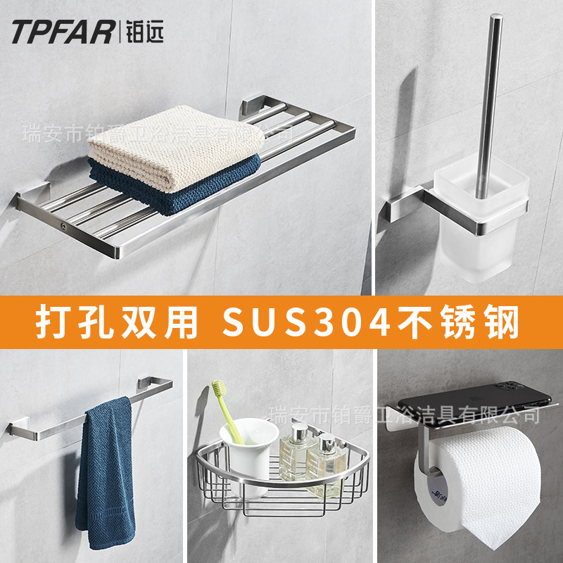 クロスボーダー304ステンレス浴室セット穴なし浴室棚タオルラック壁掛け式トイレストラップ