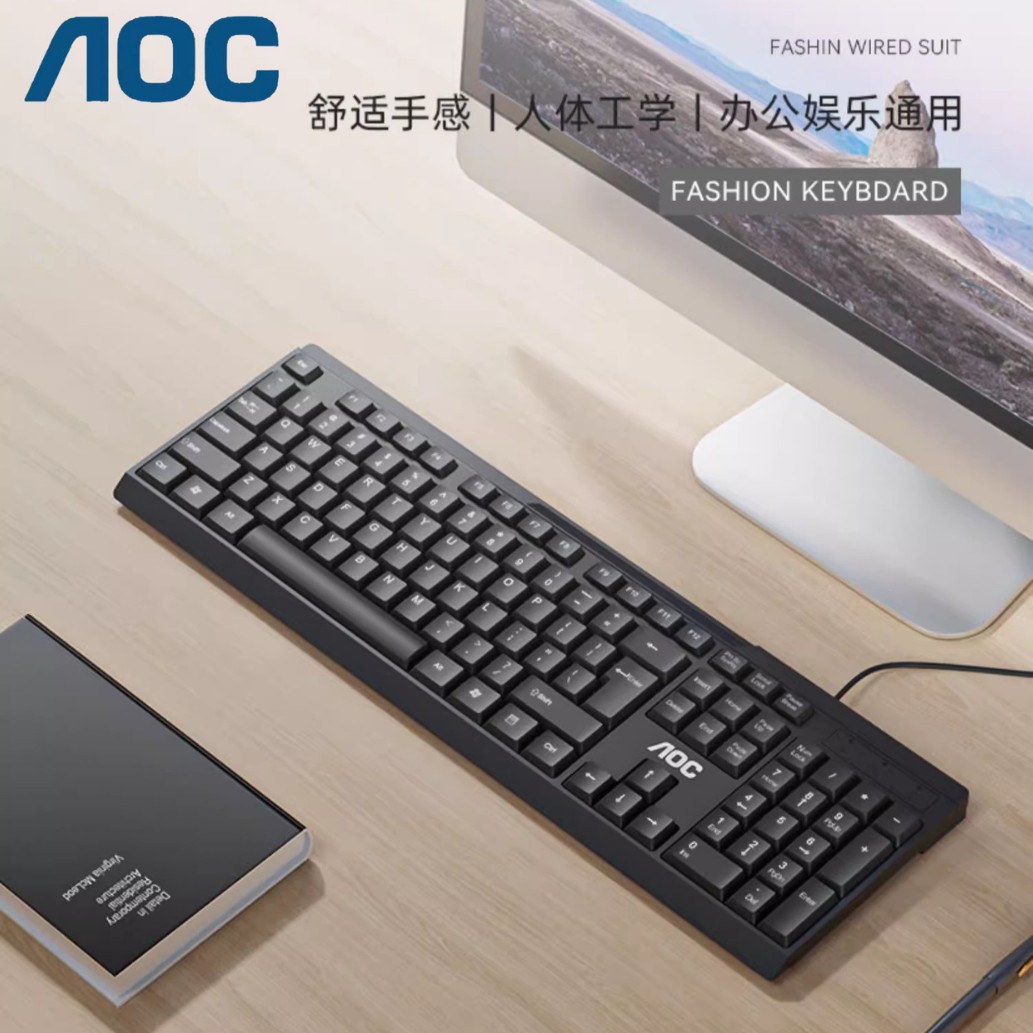AOC 有線キーボード KB161 人間工学に基づいた快適な感触のコンピューターオフィスビジネスエンターテイメント用キーボード、防滴、防塵、耐久性