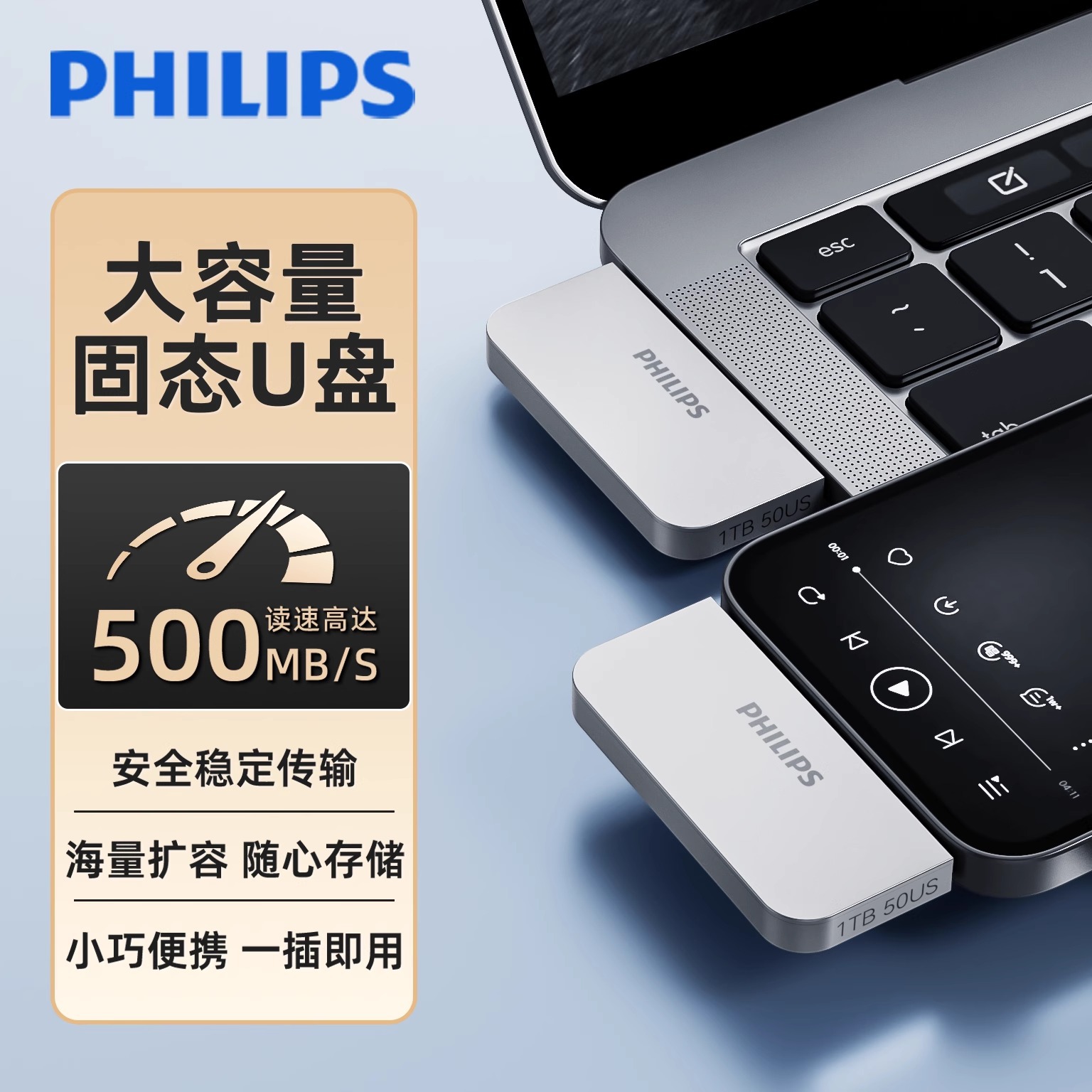 フィリップス モバイル ソリッド ステート USB フラッシュ ドライブ 超大容量 1TB 高速モバイル USB フラッシュ ドライブ 携帯電話とコンピュータの両用 オフィス専用