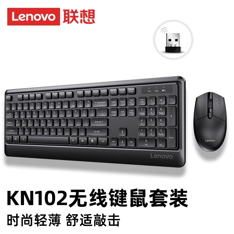 Lenovo KN102 ワイヤレス キーボードとマウス セット USB インターフェイス ノートブック デスクトップ コンピューター ビジネス オフィス ゲーム ユニバーサル