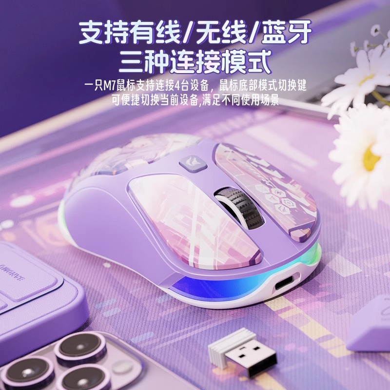 Lingbao M7 3 モードワイヤレス Bluetooth マウス二次元アニメテーマ e スポーツゲームコンピュータオフィスユニバーサル女性モデル