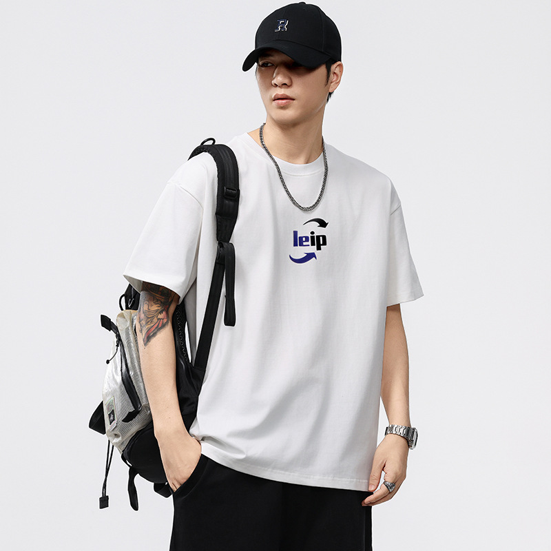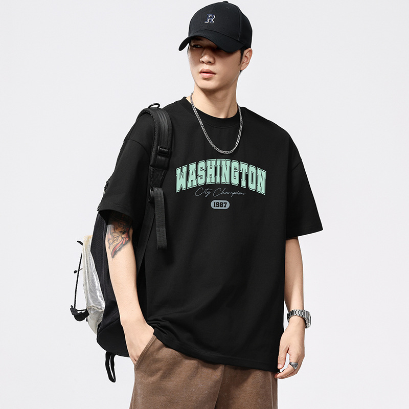 T3831 | ビッグサイズ男性服夏新商品260G丸首半袖tシャツ男性ゆるい潮牌アルファベットプリント上着