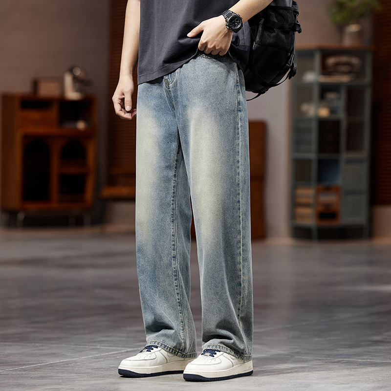 1082 | 大きいサイズの男性服夏の新商品アメリカのレトロなジーンズ男のゆるいサイズの黄泥ストレートパンツ