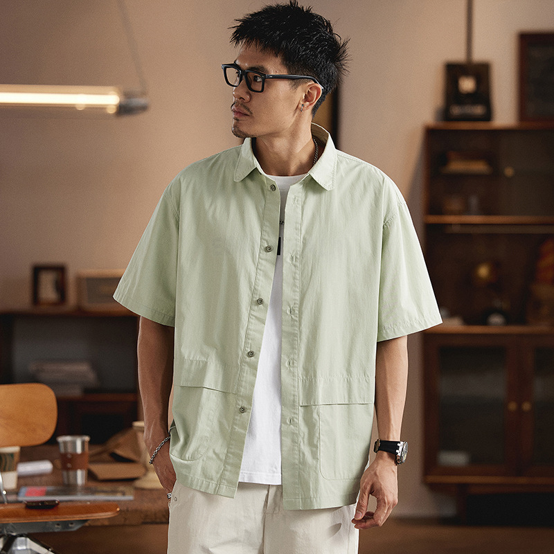 813 # ビッグサイズのメンズ夏の新型日系工装半袖シャツ男性のゆるいカジュアルな半袖シャツ