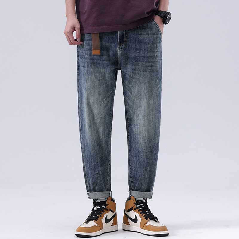 F9 607 | ビッグサイズの男性服夏の新製品レトロなレトロな水洗いジーンズ男性のゆるい弾力性の薄いズボン