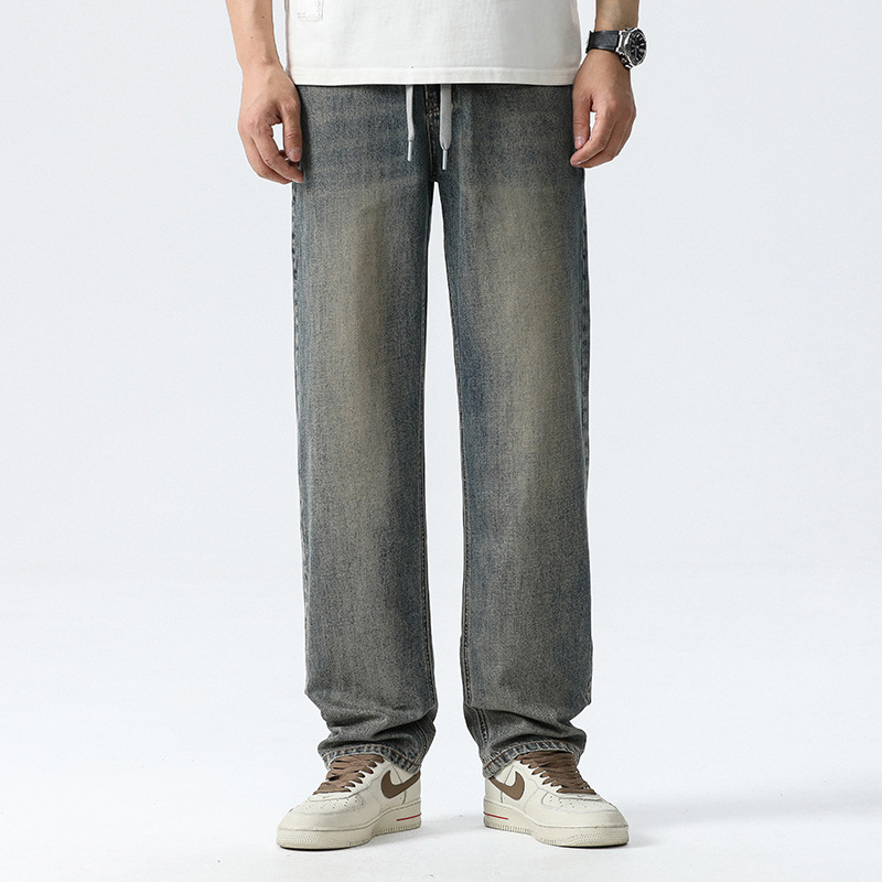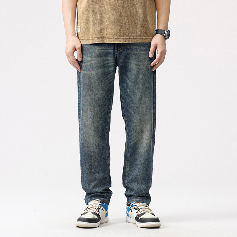 B249 # ビッグサイズの男性服夏の新商品の水洗いジーンズ男性のゆるいアメリカのレトロなレトロなレトロなストレートパンツ