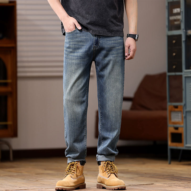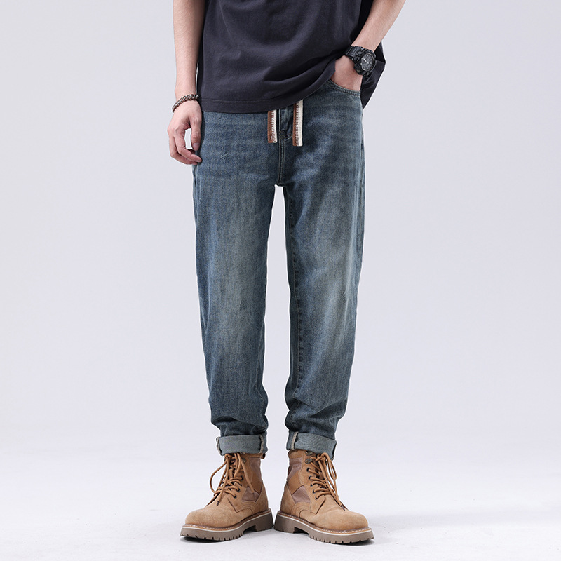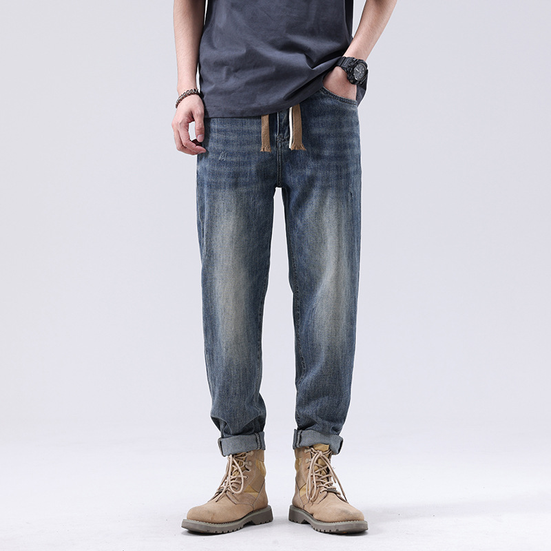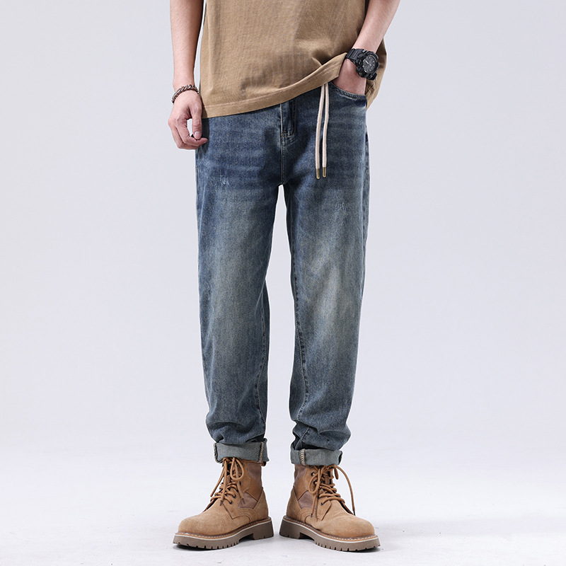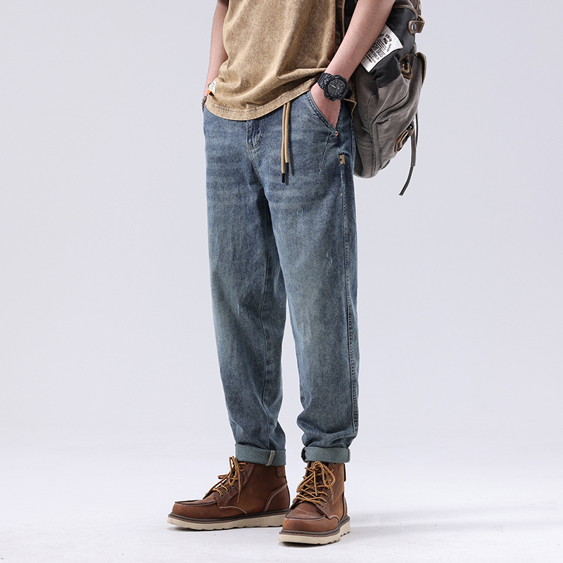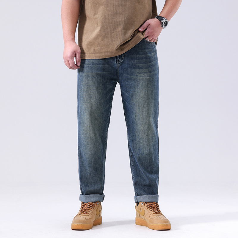 91102 | 大きいサイズの男性服夏の新型重工水洗いジーンズのゆるいレトロな弾力性の薄いズボン
