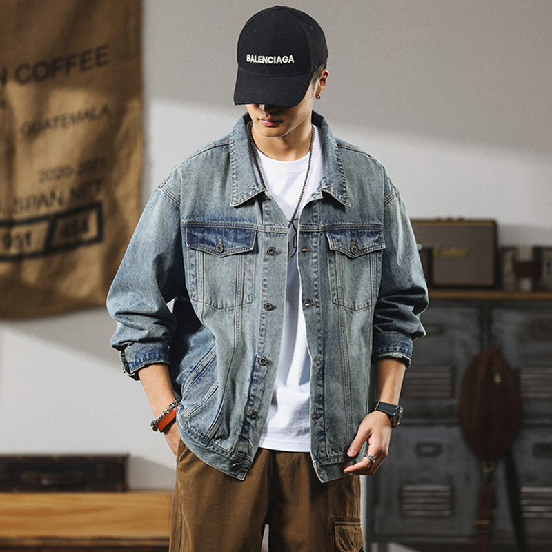 910 | ビッグサイズの男性服春の新しい再加工洗水カウボーイジャケットゆるいアメリカのレトロなレトロなコート男