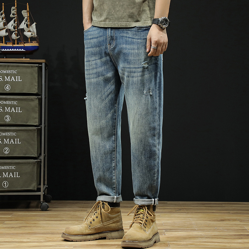 501 # ビッグサイズ男服春夏新作重工洗水アメリカレトロ九分ジーパンゆるい弾力小脚ズボン
