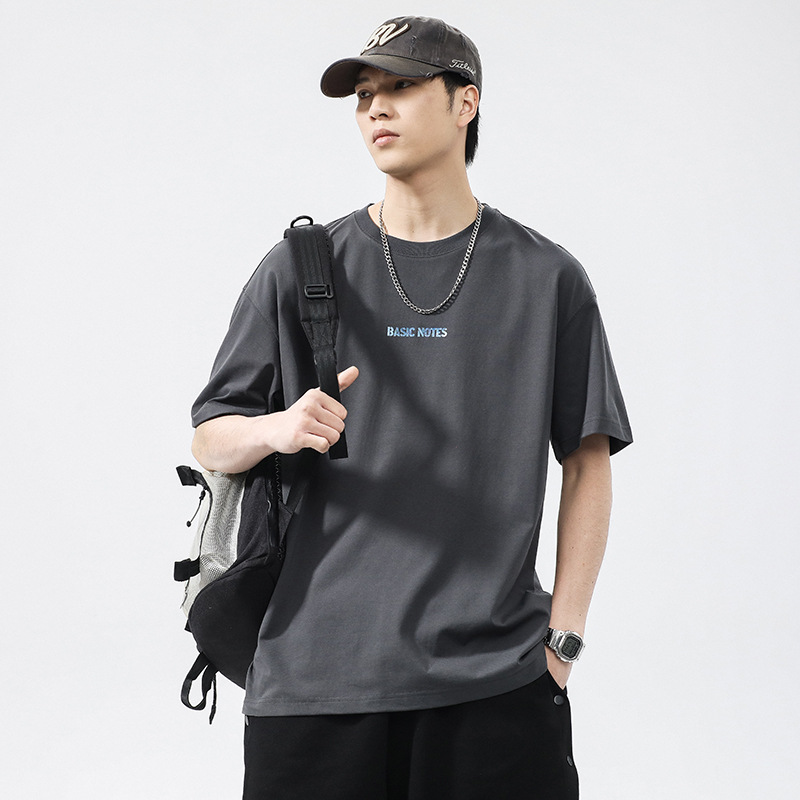 T3354 | ビッグサイズの男性服夏の新商品250g重ポンドの丸首tシャツ男のゆるいつなぎ文字プリント半袖