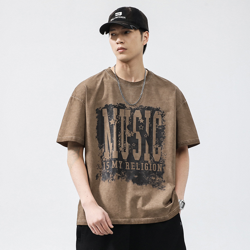 T3720 | ビッグサイズの男性服夏の新型280g重ポンドの丸首tシャツ男はゆったりとした色を炒めて古いプリント半袖を作る