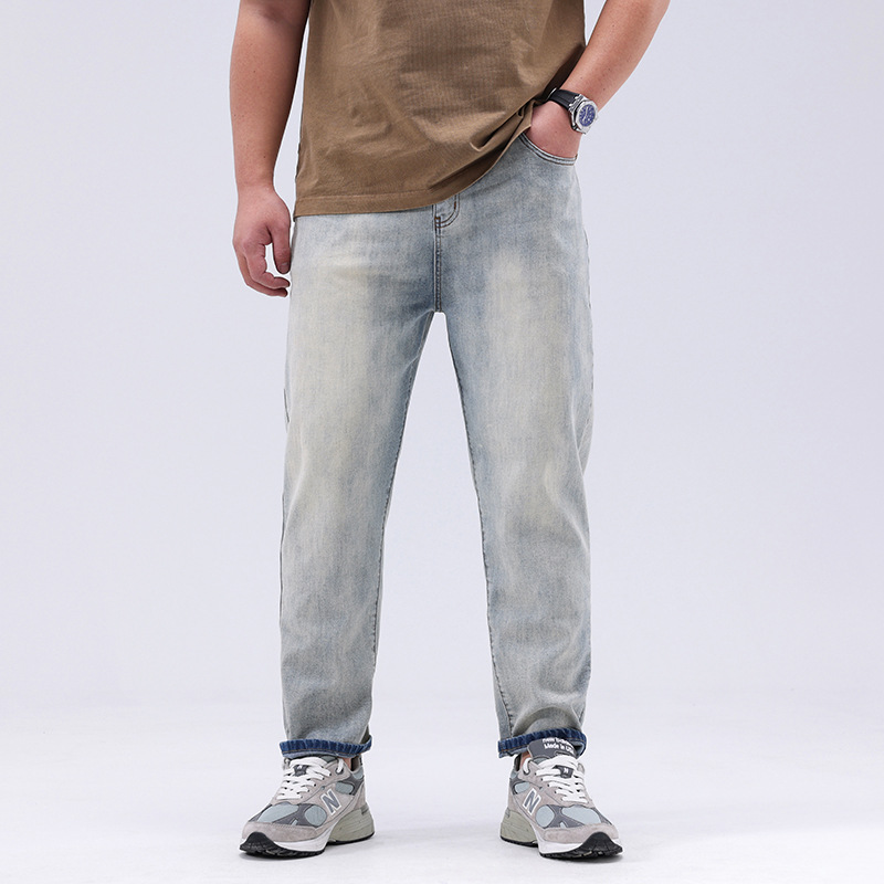 K586 # ビッグサイズ男服春夏新作ジーンズ男レトロ古いゆるいプラスサイズストレッチデニム長ズボン