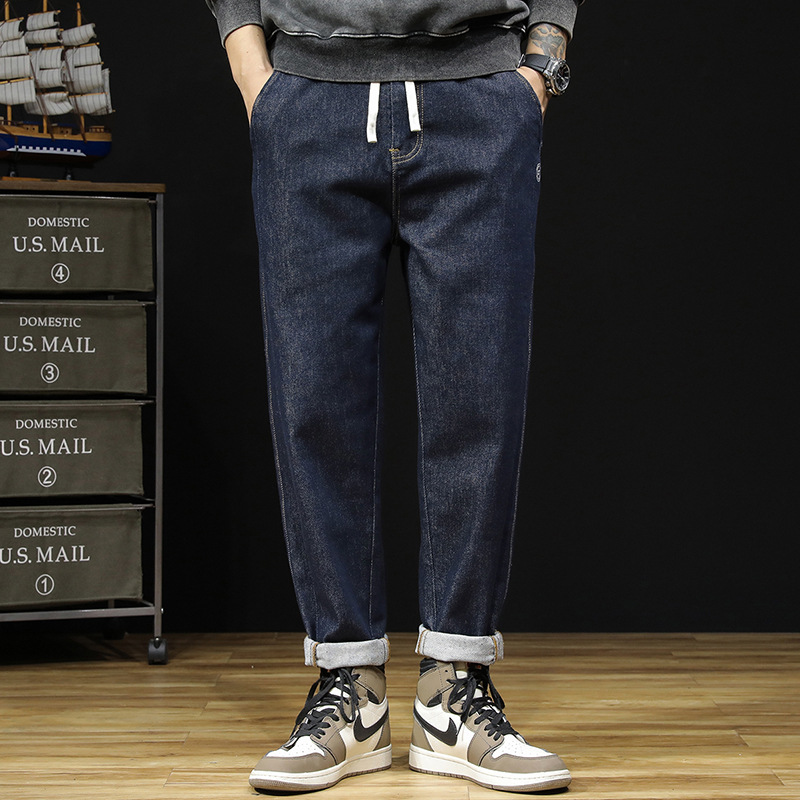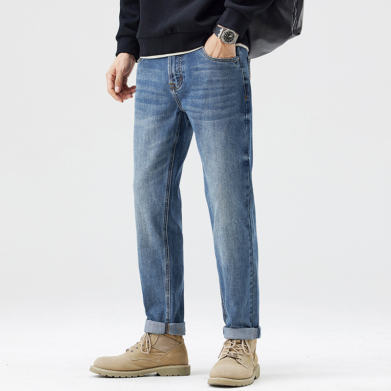 R2034 | ビッグサイズの男性服冬の新製品とジーンズの男性がゆったりとした保温レトロなストレートズボン
