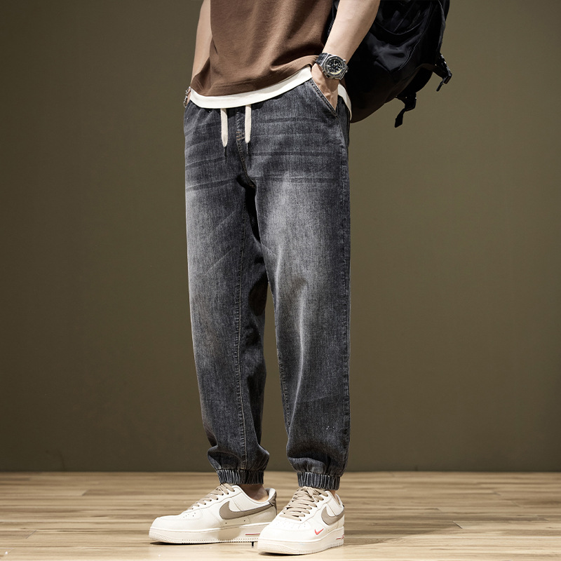 888 | 大きいサイズのメンズ春夏新商品のウエストジーンズ男のゆるいファッションブランドのレトロな弾力性のある足のズボン男