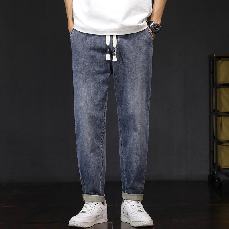 1083 | 大きいサイズのメンズ春夏新商品のレトロなジーンズ男のゆるいサイズの弾力性の薄い足のズボン