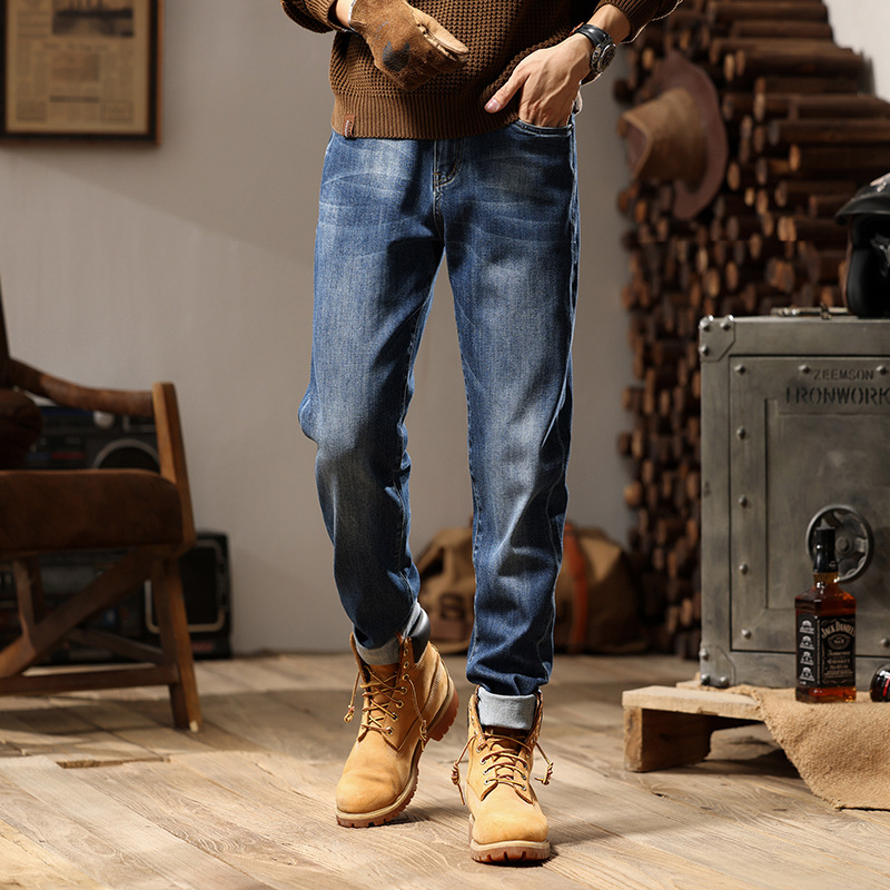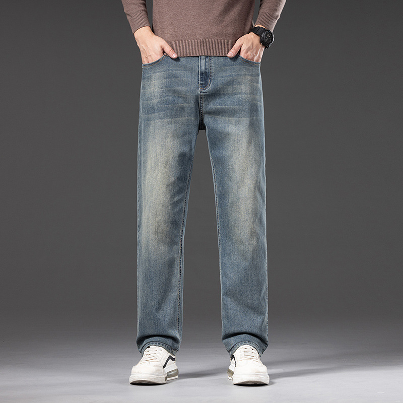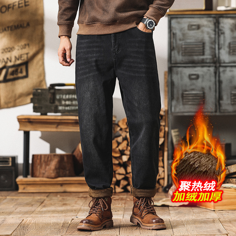 1068 | 大きいサイズの男性服秋冬新商品アメカチカチジーンズゆるいレトロな水洗い足のズボン