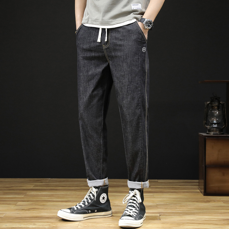 8208 | ビッグサイズの男性服夏の新しい腰のレトロなジーンズ男性のゆるいハーレム弾力性のある小さな足のズボン