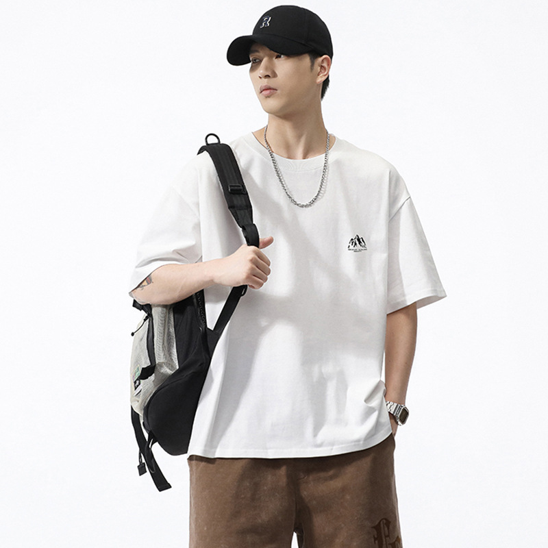 T2544 | 大サイズ男性服夏新商品240G純綿丸襟tシャツ男性シンプルでゆるい肩プリント半袖