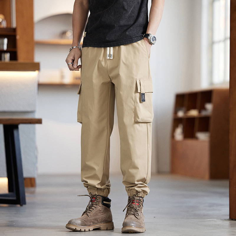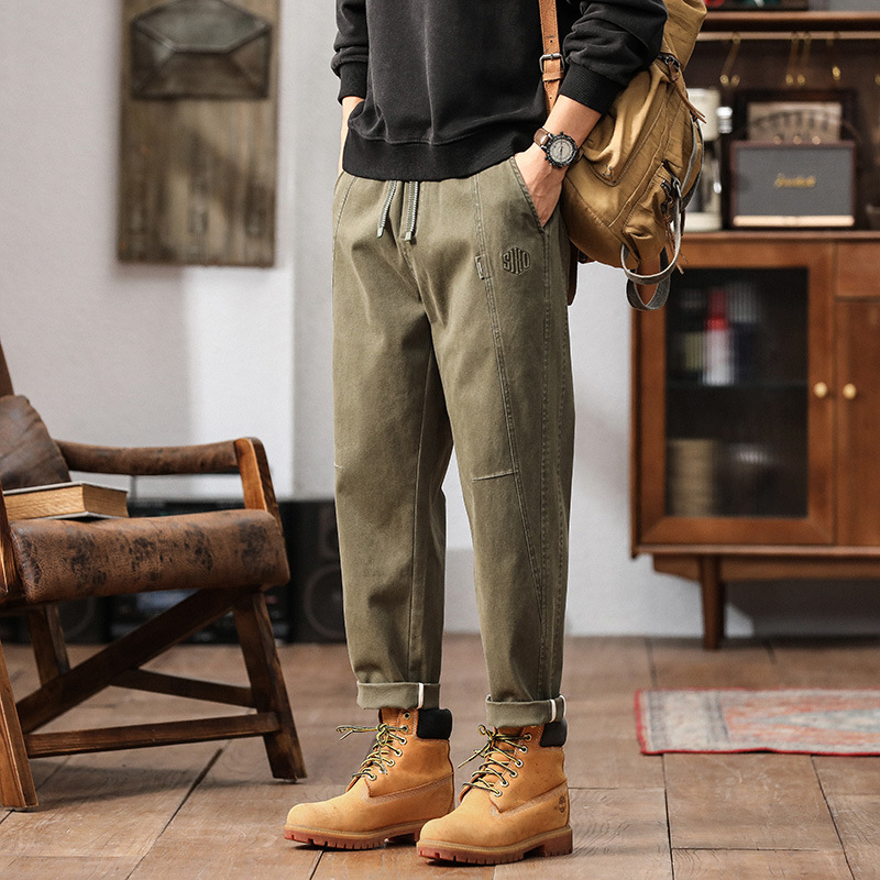S8800 | 大きいサイズのメンズ春の新作ワークウェアカジュアルパンツ、ゆったりとした特大サイズ、シンプルで万能な足首絞りパンツ