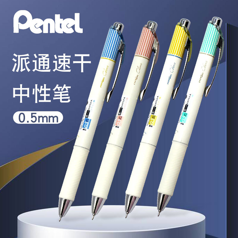 日本ペンテル派通大容量黒色中性ペン0.5mm条紋金速乾bln75試験水筆