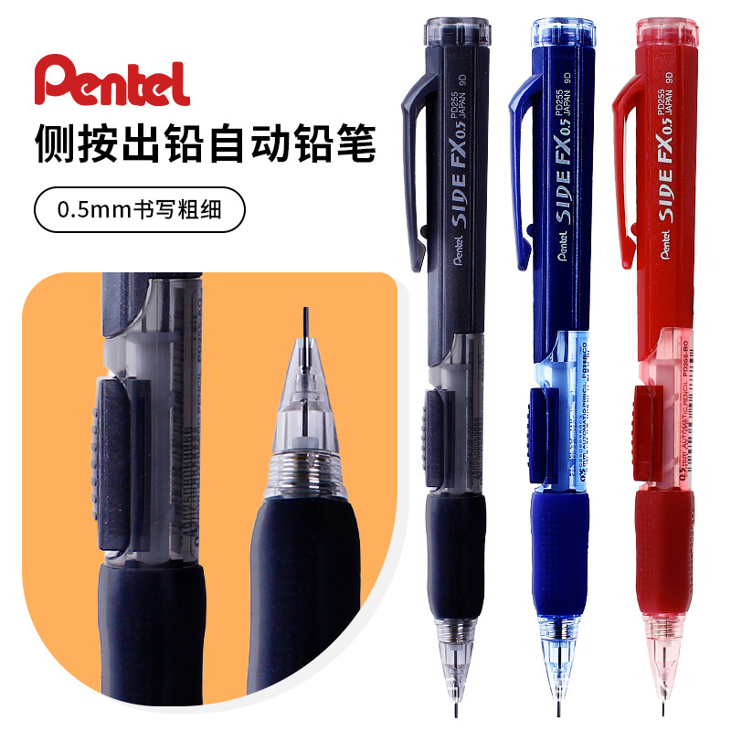 Pentel派通pd255側押しアクティブ鉛筆押し式0.5mm鉛芯六角ペン握り三色オプション