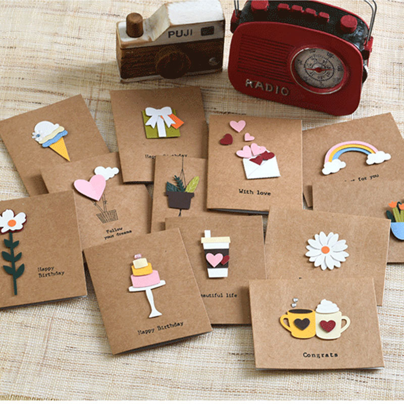イーホノ ミニ祝福カード クラフト紙 立体デカール 誕生日カード 万能グリーティングカード MINI-1836