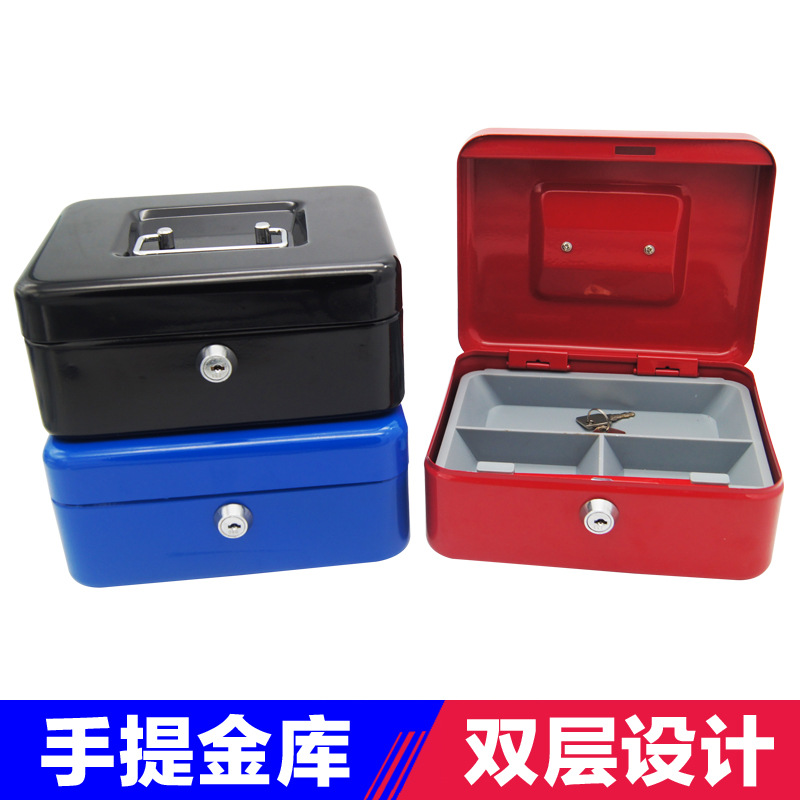地牌の大きいサイズの手提げのお金の箱のR-0010の手提げの金庫は鍵のキャッシュボックスの全金属の二重設計のお金の箱を持ちます。