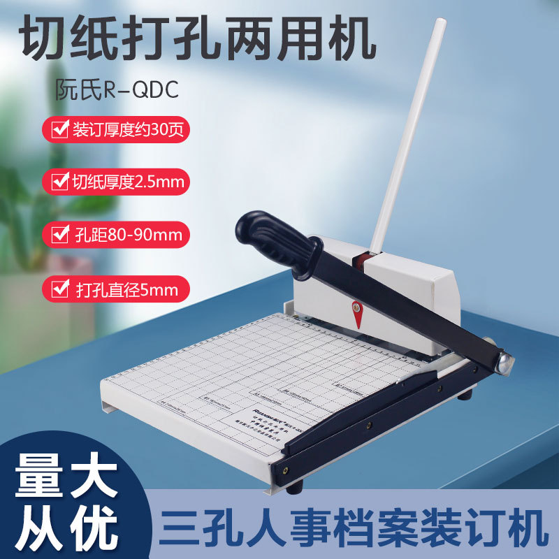 阮氏のQD-Cのタイプの紙の穴を切る両用機の人事の書類は紙の刀の3つの穴を切る機械の穴の距離を切って調整することができます。