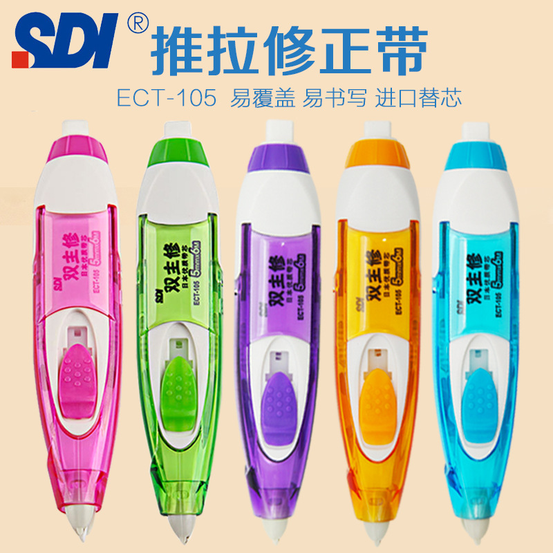 Sdi手札修正テープECT-105手押し両用修正テープ消しゴム付き5mm * 6m修正テープ