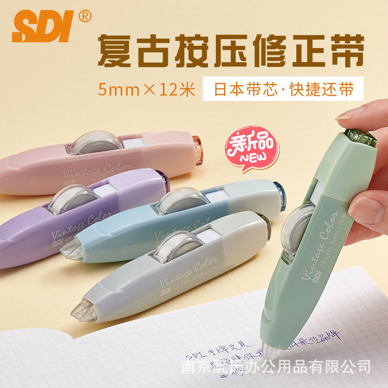 【新品】SDI手札レトロ修正帯CT-V325輸入帯芯12メートル押しペン式塗り替え帯