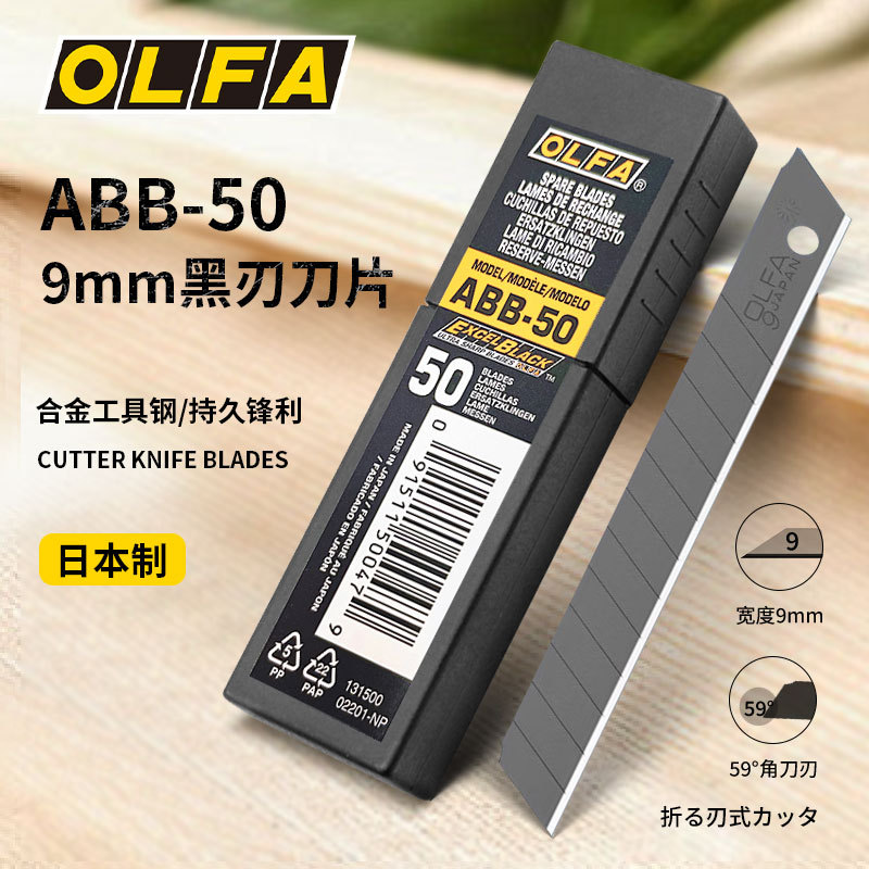 日本オルファ 小型ユーティリティナイフ オールブラック刃 9mm 工業用切断刃 ABB-50
