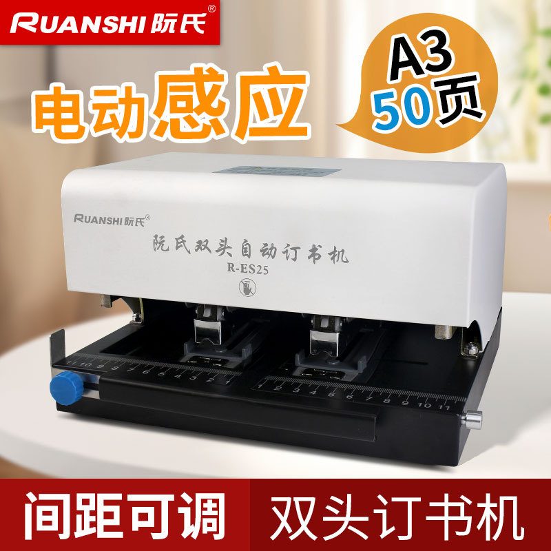 阮氏A3両頭調節可能電動ホッチキス自動タイプ50ページ対応スマートセンサー式ホッチキスR-ES25