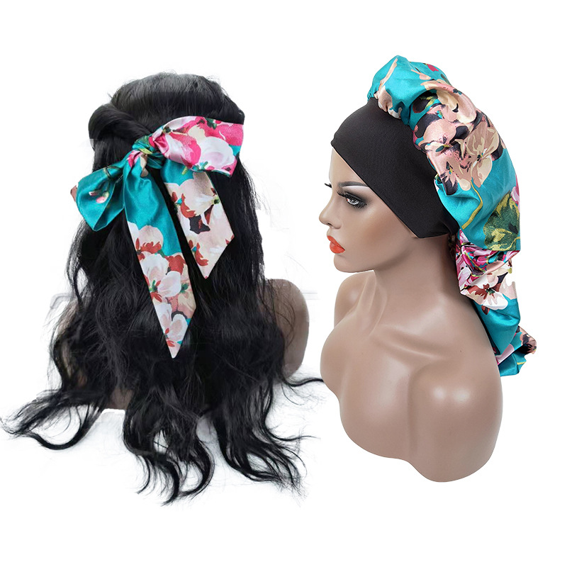 新しい女性のプリントリボン付きの頭巾寝帽化学療法帽子の長い尾の帽子のお下げの帽子の化学療法帽子の民族