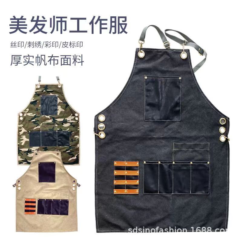 対外貿易は直接に厚いキャンバスのデニムのエプロンのlogo理髪師の焙煎コーヒーの園芸のレストランの仕事のエプロンを提供します。