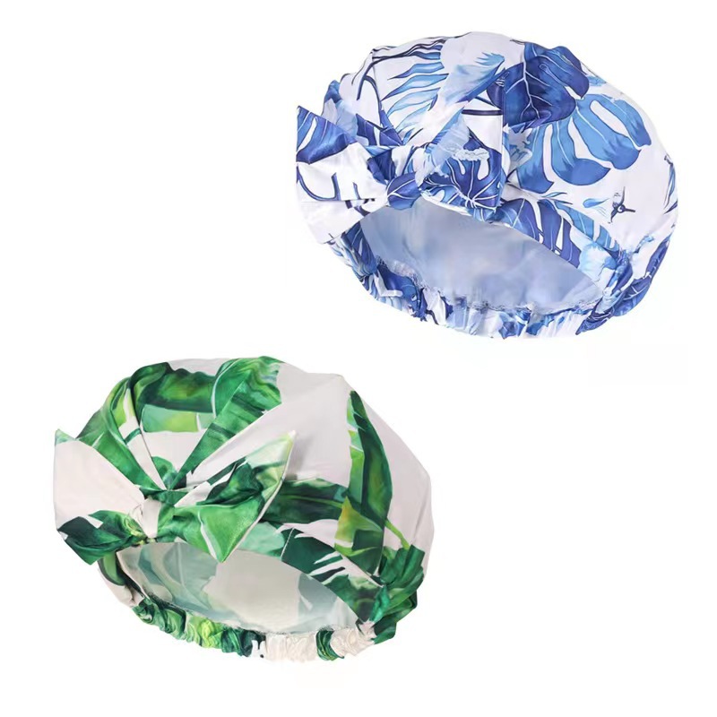 お風呂の帽子の女性の防水の新型の二重のプリントの蝶結びの頭は大きい女性の顔を洗って化粧する帽子の風呂の帽子を洗います。